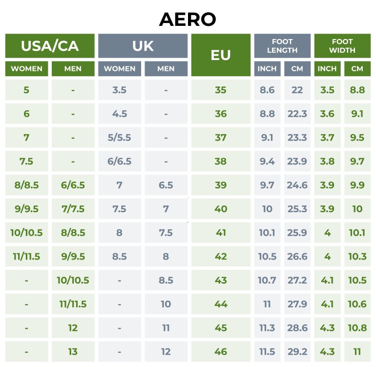 Guía de Tallas de Aero